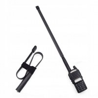 Удлинённая гибкая антенна (длина около 50 см) со съёмным проволочным противовесом (для увеличения эффективности) для применения с портативными рациями диапазона 27 МГц в качестве эффективной удлинённой антенны для переносной работы или для использования