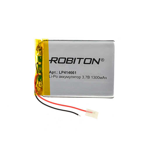 Li-Po аккумулятор LP414661 3,7В 1300мАч с защитной платой и универсальными контактными выводами.