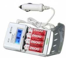 Универсальное зарядное устройство, с микропроцессорным контролем заряда, для Li-Ion, Li-Pol аккумуляторов, а также для NiCd/NiMH аккумуляторов размера ААА/R6 и AA/R03. Зарядное устройство совместимо с большинством аккумуляторов для цифровых фотоаппаратов