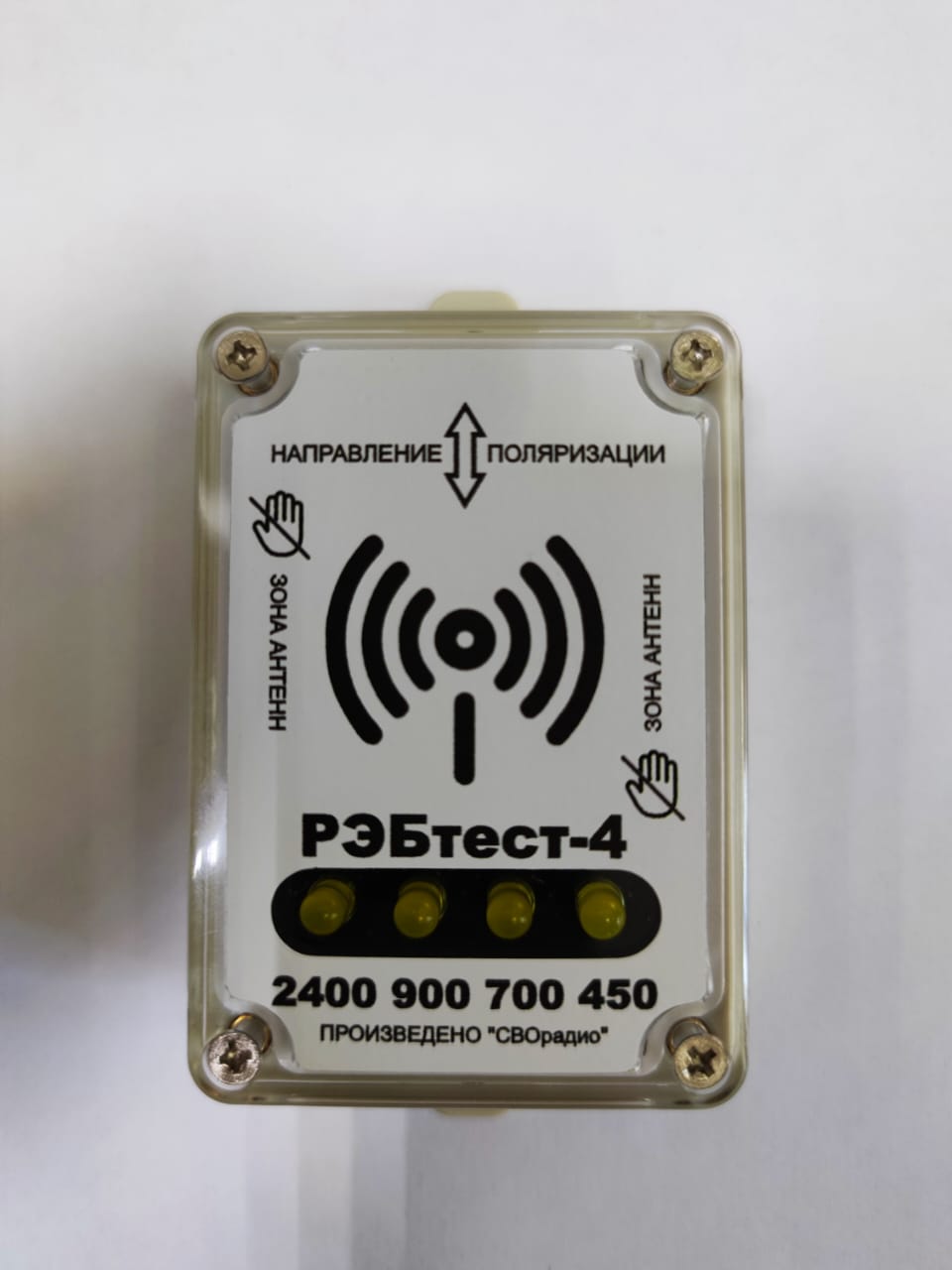РЭБтест-4 работает в 4х наиболее используемых диапазонах радиоволн, применяемых в устройствах и комплексах радиоэлектронной борьбы, управления беспилотными аппаратами, радиосвязи и системах беспроводной передачи данных - 400МГц, 700МГц, 900МГц, 2400МГц.