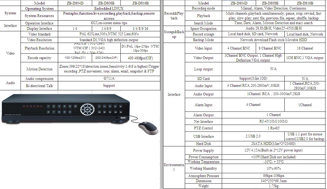Основные характеристики DVR-D816B
